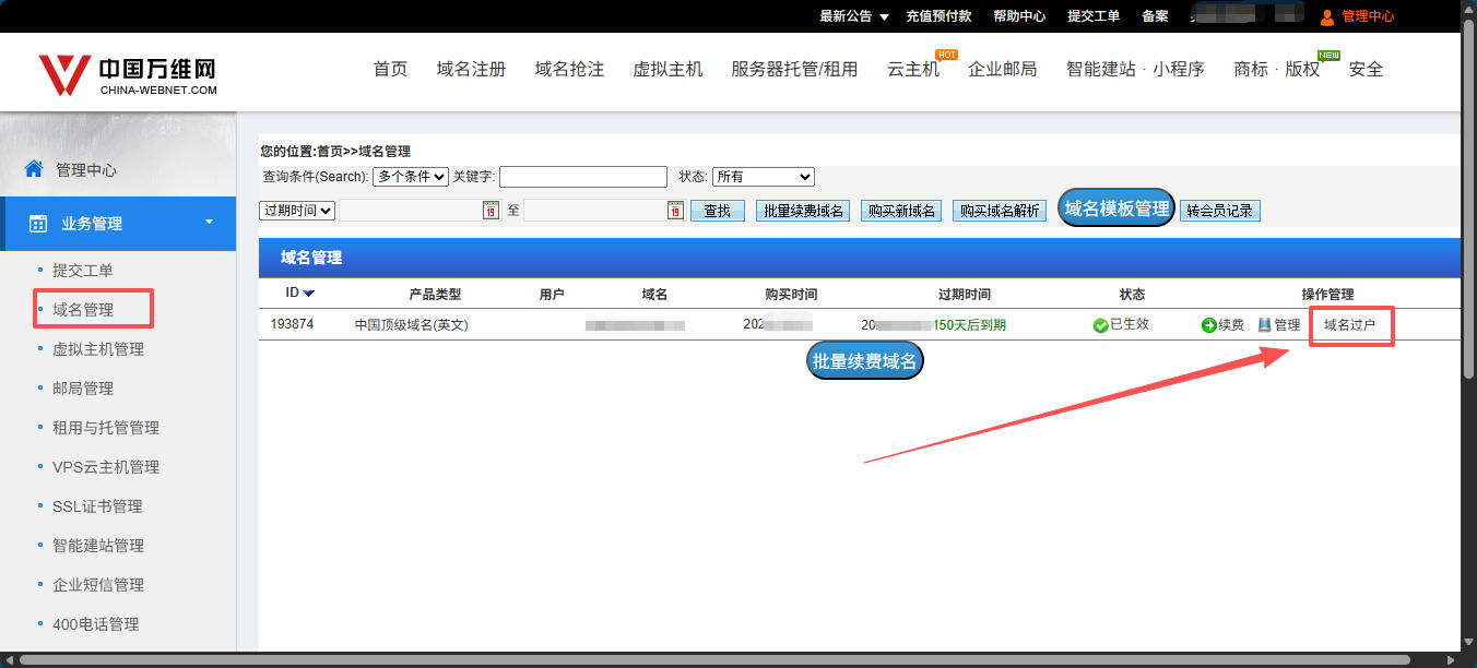 域名过户,请登陆www.szhot.com平台的会员账户后,进入管理中心,业务管理,域名管理页面,点击过户按钮后在线提交资料办理。因域名实行实名登记制度,请注意提供所有者证件的彩色扫描件。